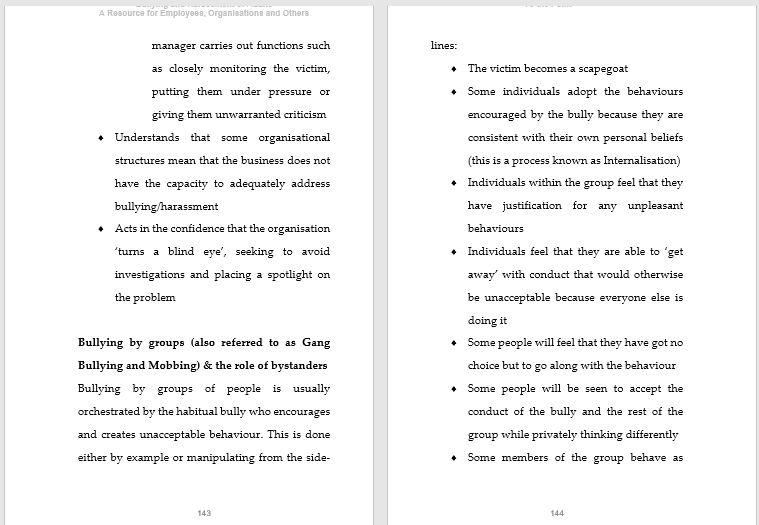 •Mitigate against and to overcome the experience of bullying and harassment for individuals & others.